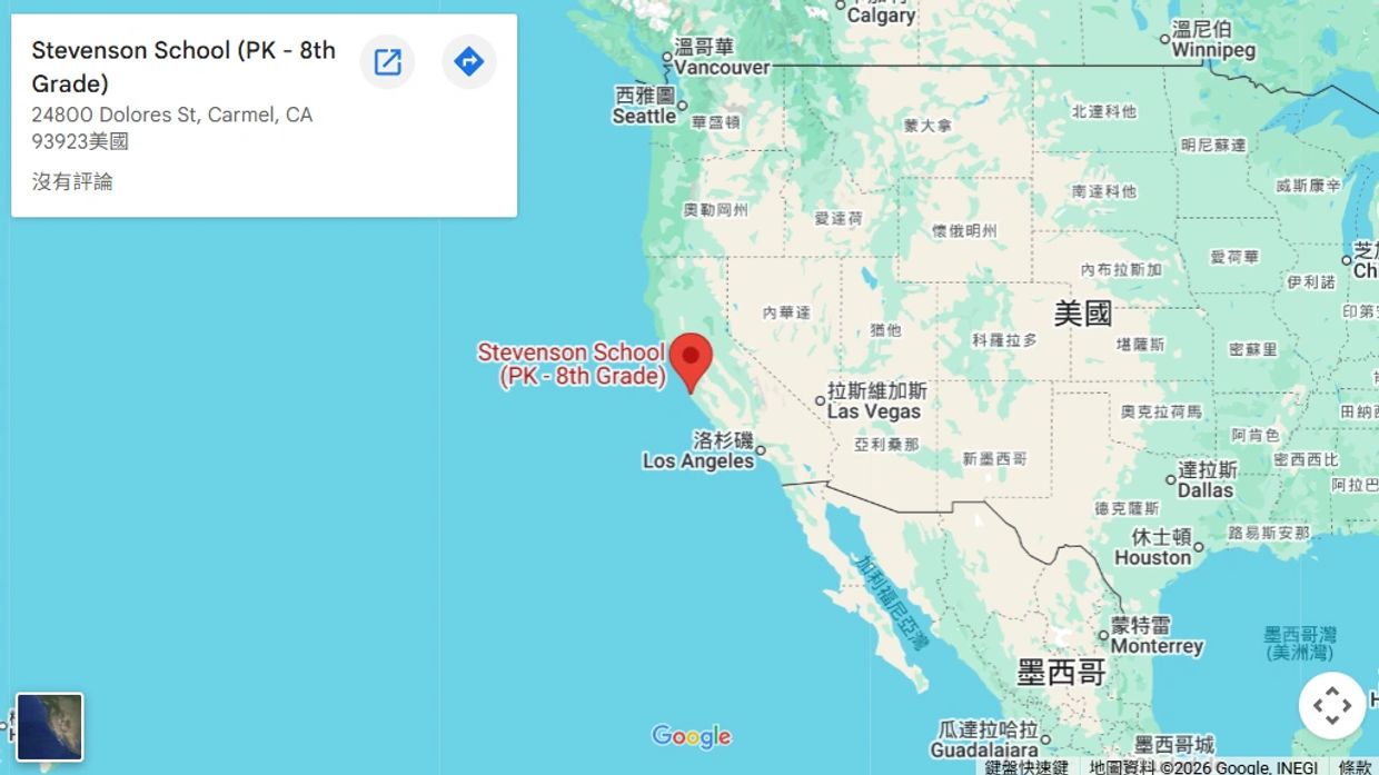 Stevenson School 是加州前五大的頂尖寄宿中學,位於安全度極高的 Pebble Beach 富人區中的富人區,校園環境優雅、學生與家長素質俱佳。